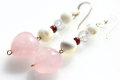 愛のキューピットハートローズクォーツ、マザーオブパール、ガーネット、水晶14KGFピアス