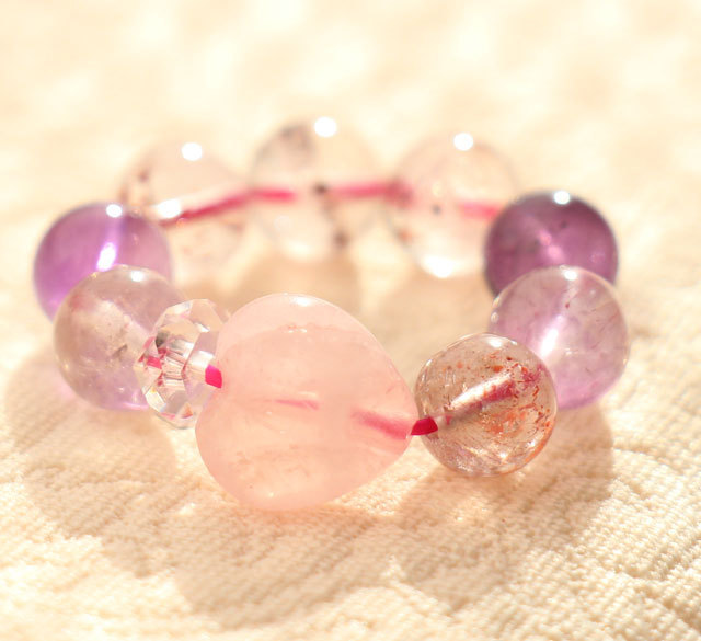 スーパーセブンとハートローズクォーツパワーストーンリング