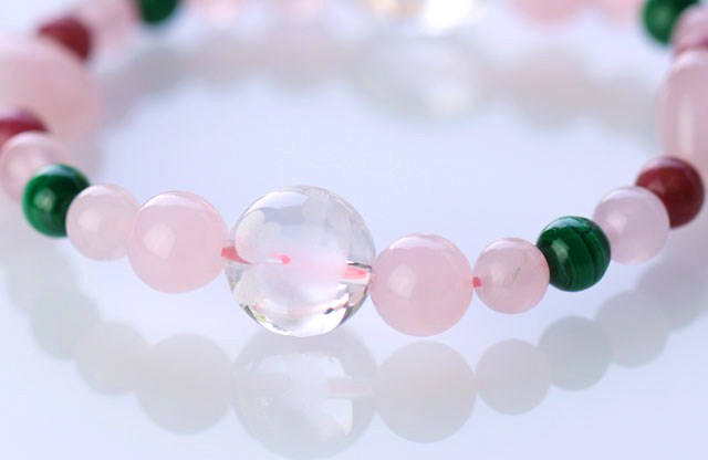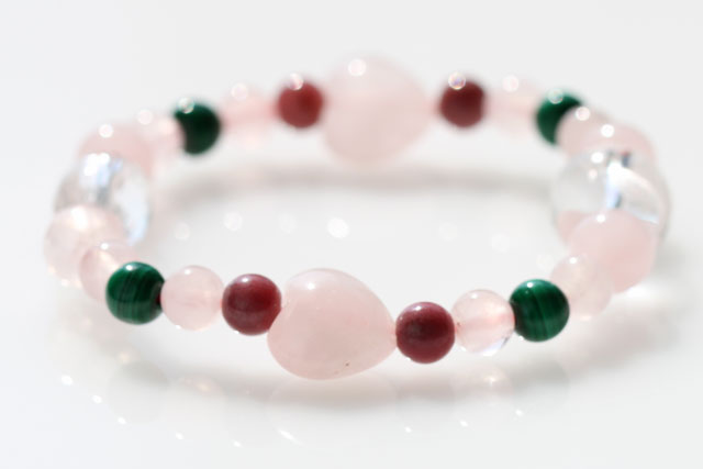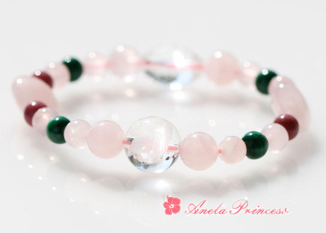 愛を引き寄せる天使水晶入りローズクォーツ、マラカイトパワーストーンブレスレット