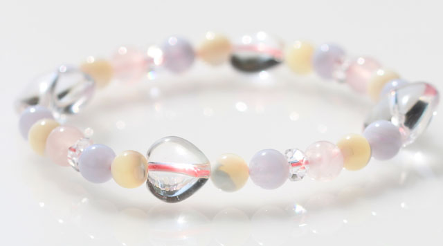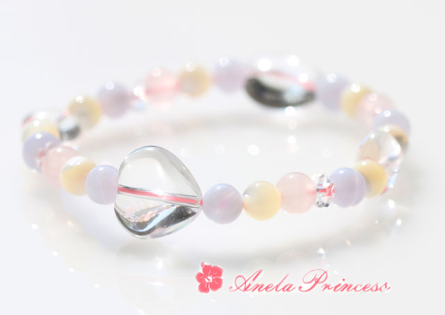 サイズ15~16cm 使用パワーストーン―ハート水晶、ブルーレースアゲート、パール、ローズクォーツ