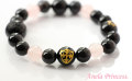 オニキスパワーストーンは、黒色で強いイメージがありますが、愛と美のローズクォーツのパワーストーンを入れることで、柔らかくて優しいエネルギーのブレスレットになっています。